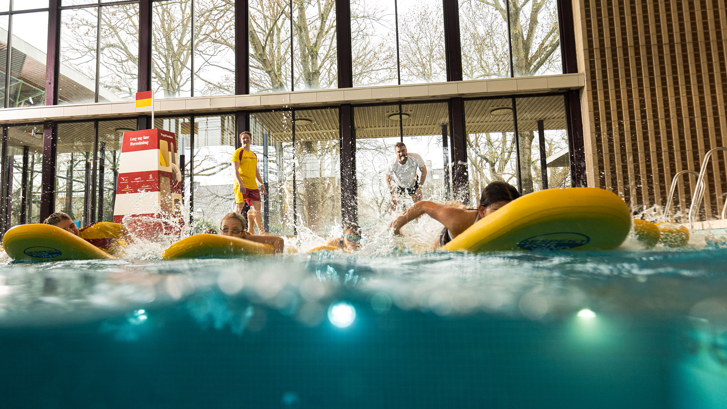 Brug livreddertårnet i svømmehallen